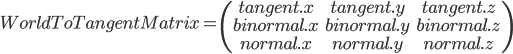 normalWS = TransformTangentToWorld(normal, half3x3(tangentWS, binormalWS, normalWS));